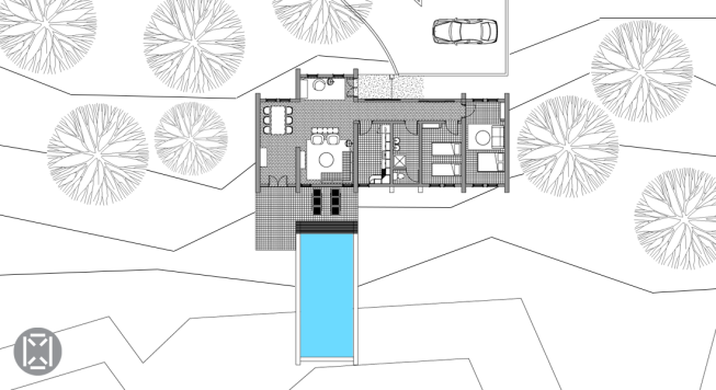 Situated on a palm oil farm, the chalet is commissioned by the owner for his family to sleep over when they visit over the weekend. Given the topography, the building is elevated from the ground to allow heavy tropical rains to run below undisturbed.