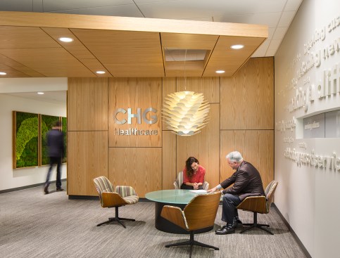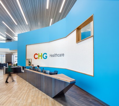 CHG Healthcare Services’ approach and methodology is centered around “Putting People First” which became the conceptual driver behind the design of the new campus. The new headquarters features two five-story buildings connected by a two-story atrium. This vision has been achieved through a set of employee amenities that creates a work environment that is enjoyable, efficient, pleasant, and productive.