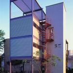 Sited on a miniscule triangular lot in Chicago’s notorious Cabrini Green neighborhood, this urban pioneer packs 1,152 square feet of high-style living space onto less than 1,700 square feet of land. Its forms are bracingly simple: four stories of steel-framed structure, a concrete block stair tower for circulation, and a steel circular stair for secondary egress. Enclosed living spaces occupy the two middle levels of the main structure, which shelters a ground-level parking pad; the top level is devoted to a shaded roof deck. Materials are drawn from a utilitarian mix of steel and block, with slate floors and black granite countertops providing a sophisticated counterpoint.