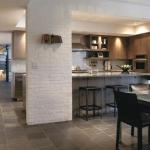 Senhauser chose materials that maximize natural light and integrate the kitchen with the rest of the house. “We used no paint in this house, except for the white-painted brick,” he says. “All of the color comes from the materials themselves.” Cases in point: the mottled, gray-green slate floor, black-and-white-speckled granite countertops, and a light-green glass backsplash. Senhauser did break his own rule on color by staining the cabinets with a blue-gray aniline dye, which helps unify them with the stainless steel appliances. But the judges didn’t mind. “They truly brought it into today,” said one. “It was a nice house in the 1960s, and it’s a nicer one now.”