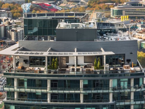The site is tight. From a minimal 120’ x 128’ site, a 440’ tower will rise. With such a small footprint, critical attention was paid to shaping the base to anchor the tower, improve the pedestrian experience and respond to the Lenora green street. The tower itself is sleek and contemporary with a curtainwall system that drapes an interior concrete frame creating an urban sculpture.