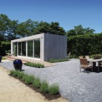 This Cocoon9-designed 480-square-foot prefabricated studio in Southampton, N.Y., is aimed at the luxury market, offering the advantages of factory-built construction with an array of high-end finishes more common to site-built structures. It’s rendered as a simple box with vertical wood siding punctuated by 9-foot-tall floor-to-ceiling windows that make the small structure’s footprint feel far bigger than the limits of its own perimeter.
