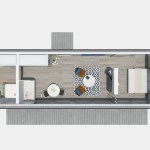 A combined kitchen/dining/living area sits at the center of the 40-foot-long pod, bookended by a bedroom at one end and a full bath at the other. A freestanding divider between the living and sleeping spaces holds an ethanol fireplace and a pivoting TV that can be seen from both “rooms.” Cabinetry provides storage and conceals furniture. Sustainable features include FSC-certified wood, LED lighting, and low-E glazing; solar or green roofs are options.