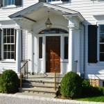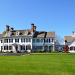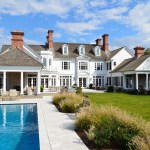 This Colonial Revival Style home was built for clients requesting a traditional American country residence. Four brick chimneys anchor the five-bay-wide central main block, while pediment dormers with arched windows embellish the wood shingle roof. The asymmetrical rear façade is well suited for a family who enjoys casual outdoor living and entertaining. Projecting side wings enclose the main terrace and provide porches for additional covered seating. Elegant side wings, a breezeway, and a whimsical barn-like garage seem to have been developed over time, creating a classic New England feel.