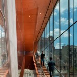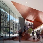 Now, no doubt about it: The new Vagelos Education Center has huge curb appeal. Pedestrians regularly stop and put down their shopping bags on this otherwise quiet, uneventful street to gaze up the jumbled glass façade. Even given the highly-exercised signature condos now populating downtown neighborhoods, the design is unique in the city.
