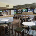 With the direction of our main interior designer, we compiled a set of wood finished products of commercial stools, tables, and chairs that brought a classy look and comfortable feel to the lounge area.