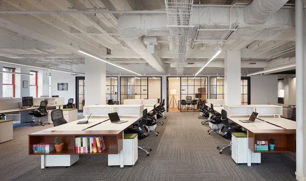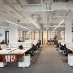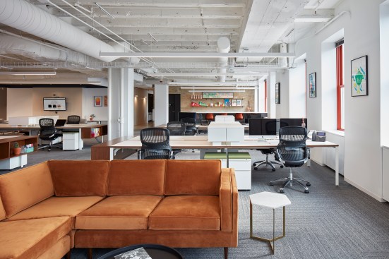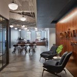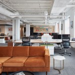 GREC employed a warm color palette featuring brass accents and inviting lounge furniture to create a relaxed office environment. Revealed elements of the original Mart structure compliment new polished concrete floors.