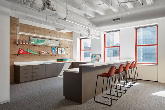 Publishers Condé Nast and music media company Pitchfork join operations at Chicago’s Merchandise Mart. A new open office environment on the twenty-first floor is anchored by a large café and breakroom that doubles as an event space with a stage.