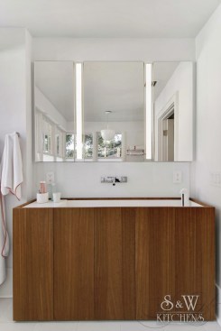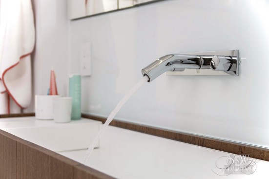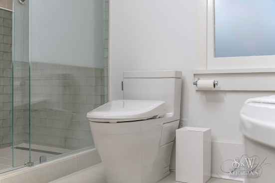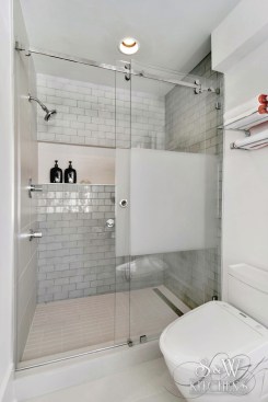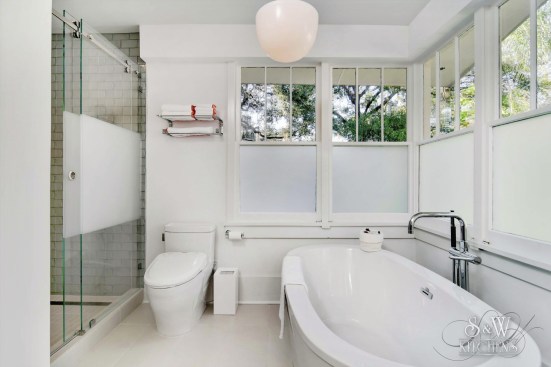The client asked us to add a bathroom on the second floor where none existed, keeping with the contemporary vintage feel of the home. A closet wall was removed to add a shower, tub, toilet and sink area to the space. The client wanted to keep the windows that were original to the home so we added a hurricane-approved frosted overlay on the bottom half of the window – providing privacy and meeting code for hurricane compliance. Plumbing and electrical were brought in to the space to create a spa-like bathroom for the second floor of this older home. Other features: aqua glider shower door with low iron glass to help minimize the green tint and wall to wall niche in the shower to allow for product storage. We also repurposed existing door/hardware to match what was existing.