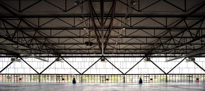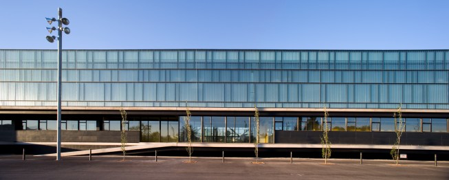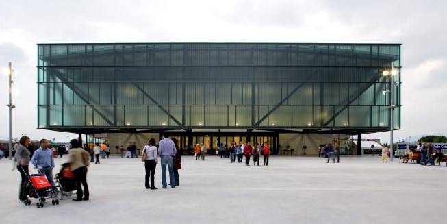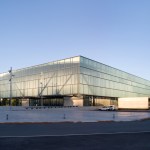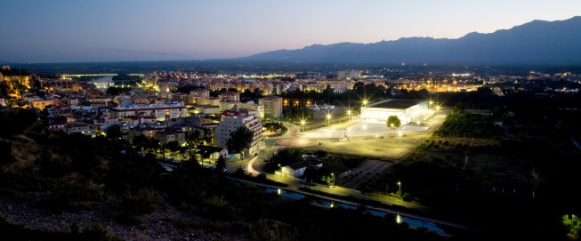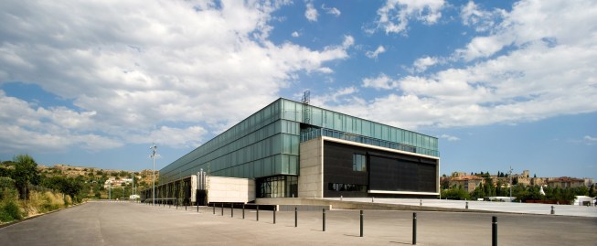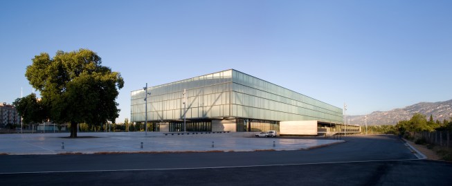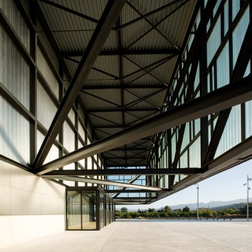 Located on a site along the Ebre River in an area undergoing urban development, this multifunctional building is the venue for trade fairs as well as sports and entertainment events. The structural system generated the means by which to establish the formal and spatial qualities of the building as well as the functional order, resulting in its organization into three differentiated spaces: the huge ‘container’ for the diverse activities; a service area running parallel to it and the stage situated in parallel to the main space. Entry on the east side is via a large plaza and another plaza was created on the west facade, linked to the reversible stage. The roof is covered by a garden that both responds to the landscape as well as provides thermal control. Given the translucent glass that covers the facades, during the day the building is filled with indirect sunlight and at night its internal illumination makes it glow, much like a giant urban lantern.