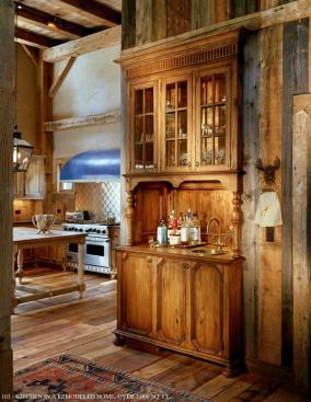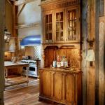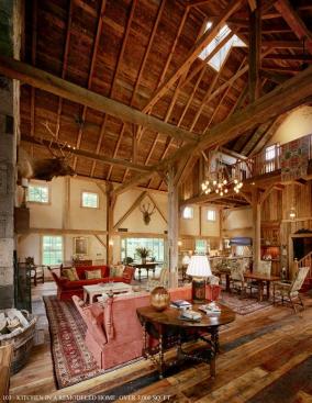 The owners loved the old barn on their property and didn’t want it to languish: They wanted to use it for good times with family and friends. But every serious party space needs a kitchen that makes entertaining a pleasure. Here, the challenge was creating one that would help retain the barn’s original character. For this timber-frame room to keep its country charm, using the reclaimed lumber from the site and the original barn was essential. Salvaged wood is used on the floors, as well as for the kitchen prep table, and the cabinetry. Beloved items that the owners had tucked away in storage—an antique icebox, a range hood—are incorporated into the kitchen’s design, too, making the barn feel homey. Stainless finish in the kitchen helps emphasize the timber-frame personality of this spacious, old place, underscoring its rustic beginnings.