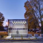 As if nicotine addiction isn’t punishment enough, smokers often are spatially ostracized to satiate their habit. The 275-square-foot Corinthian Gardens Smokers’ Shelter seeks a more elegant solution—shielding this Des Moines, Iowa, apartment complex’s resident smokers by day, and providing a well-lit, secure space for them at night.