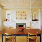 But the formula emerged as much from client interest as from the architects’ philosophical debates. Tired of the constant upkeep on the old farmhouse that had been their longtime summer home, the owners had found a fine shorefront lot that seemed to call out for a Shingle-style house. But, while they wanted a house that acknowledged the “cultural history” of the region, Elliott says, “They didn’t want it to be this pretentious Shingle-style house. They wanted it to be more casual, almost stripped down.” In browsing through a book on the style with their architects, “The images they kept coming back to were the carriage houses and the kitchens in these big Shingle-style mansions.” The carriage-house scale fit their needs, and the utilitarian aesthetic—the simple millwork, slate sinks, and exposed steel beams—suited their taste. Avid art collectors, the owners wanted their summer place to be as much a backdrop as a showpiece, Elliott says. “We also felt that when it was stripped down it would be a better showcase for their stuff.”