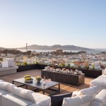 Perfectly manicured and thoughtfully designed, Ulinskas makes use of the large rooftop deck to capture uninterrupted, panoramic views of the Golden Gate Bridge, San Francisco Bay, and beyond. Ample seating allows for room to entertain and catch the sunset while a rectangular stone-crafted fire table provides year-long warmth for chilly NorCal nights.