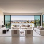 Sprawling over three levels with each floor measuring about 4,000 square feet, the home includes six bedrooms, seven full bathrooms, two half bathrooms, and a three-car garage. The home also features a private movie theater and wine room, a gym, a 72-foot lap pool, a built-in stainless steel spa, and a wellness spa with a glass-enclosed sauna and steam shower primed for optimal wellness. With the entrance pushed back on a south-facing yard, Ulinskas was challenged to use the expansive outdoor space by creating an experience around the natural elements. Prior to the entrance, a seating area and adjacent dining room open up to the garden through floor-to-ceiling, full-width pocketed sliding glass doors. The doors cast a minimal footprint to create the most transparent relationship between interior and exterior living. The structure is pulled back from the exterior walls with the columns set in with glass to create a floating-like effect of the roof to allow for a linear ribbon of bronze windows throughout the home.
