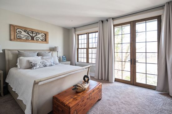 The master bedroom sits at the back of the room to allow for views of the lake. Access the deck through the double French doors. A large walk-in closet and master bath rounds out the master suite.