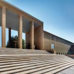 The museum is the last building that Saarinen designed on campus, and one of the most impressive. The structure is half of an austere, symmetrical composition mirrored by the academy library and centered on a monumental staircase and portico. Connecting old building and new via an underground corridor for staff and art, the architects relocated the mechanical plant for the museum and library into the new Collections Wing, freeing up space on the original lower floor for galleries and archives. Inside the addition, within a 45-foot-wide footprint, comparable to that of its conjoined twin, the architects wedged a massive program, including a loading dock, seminar space, and open storage that puts the complete collection on view for the perusal of Cranbrook’s interdisciplinary scholars.