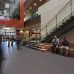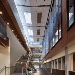 The building’s design fosters innovation and collaboration through a straightforward plan establishing a lab zone and a research office zone. Each is connected by an atrium featuring seating for collaborative meetings. A glass wall along the lab zone allows visitors to witness the research activities inside, and provides a sense of transparency and safety for students and researchers working late into the night. Easily reconfigured casework addresses the need for flexibility in research environment.