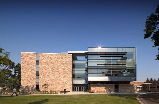 This new bioengineering building provides more than 43,000 sq. ft. of multi-disciplinary laboratories and research offices; 16,000 sq. ft. of classroom space and collaborative work areas; 10,000 sq. ft. of administration space; and a 24-hour study space. Contextually grounded in the CSU campus language, the design features stacked Ashler Sandstone & Red Sandstone panels, signature materials of the region.