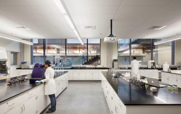 The design team also worked closely with researchers to create shared equipment rooms that reduce duplication of expensive equipment while still separating some of the more environmentally sensitive processes.