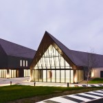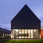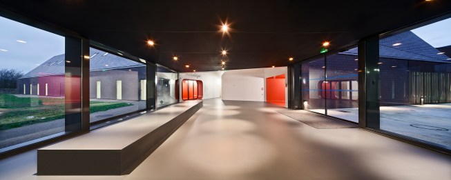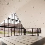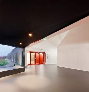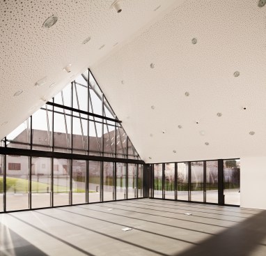 The new building – the cornerstone of the project and the face of the cultural hub within – is in perfect harmony with the architecture of the town centre. The double sloping lines of the structures of yesteryear meet a contemporary archetype, dressed in dark purple slate and interrupted intermittently, depending on the needs of the programme, by volumes framing the landscape.
