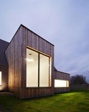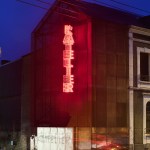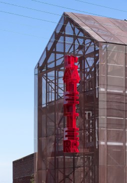 With its gables echoing the outline of the existing lodge, the building known as “Signal”, can be recognized by its copper grid cladding. A vertical, eight letter sign (4 metres high) made from PMMA (transparent thermoplastic) has been fitted 4.5 metres from the ground to identify the centre. To ensure it is readable with the semi-transparent grid behind it, the sign is backlit, letting off a soft, unobtrusive light.