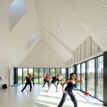 With its views onto the garden, it is the only building open to the public. Designed as an H in the centre of the plot, it links the two main bodies in the centre. The body of the Maison des Associations (Local Clubs and Activities Centre) is an extension of the existing structure which lends its truss as a point of connection. The glass-panelled hall presents a generous space for exhibitions. It also serves as a “gateway”, to oversee access to various activities.