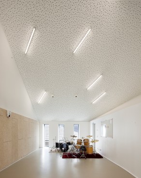 The first floor is entirely given over to teaching music. The teaching rooms have been designed around an inner passageway, with an urban feel.