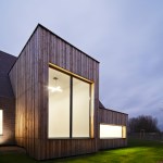 A homogenous material and a natural stone has been suggested for the cladding of the archetypes: dark purple slate from Canada. This is implemented in a traditional manner by the local crafts and trades guild. Its use is often reserved to prestigious buildings, but here it is implemented in streamlined design, masking the gutters, with no overhang on the roof. The whole (facades and roof) creates strong visual continuity. The envelope of scales created by the slates and the reflections of the schist, make the dark purple hue more vegetable than mineral. Thus, the poetry of the gardens and courtyards of the old Damau factory is preserved.