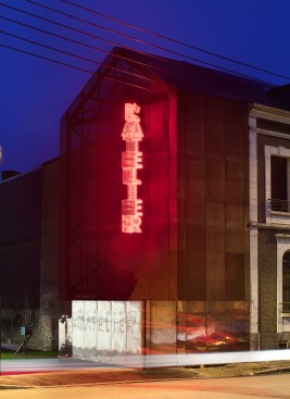 The main function of this “open air” building is to announce the cultural centre on the high street. As the building has no commercial uses, the sign serves solely to communicate the town of Gournay- en-Bray’s cultural activities. The lettering reflects a contemporary re-reading of signs, a nod to the remarkable style of the advertising panels which, in the past, were so characteristic of rural French landscapes.
