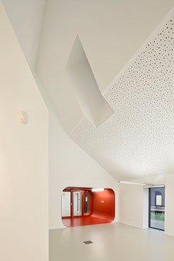 The multimedia library is organized around a journey through life. The adult area is close to the entrance and the deeper visitors venture into the building the closer they get to the children’s areas. The woodwork suggests almost cathedral-like volumes, with a soothing light flooding the reading rooms.