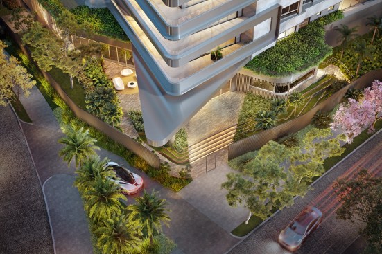 The new vertical leisure community will rise in an area that naturally lends itself to the support of human wellbeing. In addition to the abundance of greenspace within the neighborhood’s squares, the streets of Bela Vista’s Porto Alegre community are lined with towering trees, great for walks in the shade, for dogs to stroll, and for families to enjoy clean, fresh air amid the dense, urban landscape. In keeping with that theme, the design of the building fosters further contact with nature –– the amenities have been integrated into a living garden, creating an open-air living environment at all scales. Moreover, the curated selection of amenities is intended to support residents’ physical and mental wellbeing and to inspire interaction and socialization with one another. Great care was taken during the design process to ensure the terraces and balconies bring natural light within the units, encouraging greater awareness of wellness, while providing additional opportunities for terrace and balcony gardens and greenery that might help to mitigate climate conditions around the building, creating a special, micro-ecosystem for the multifamily community.