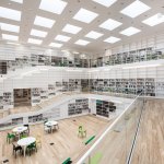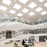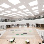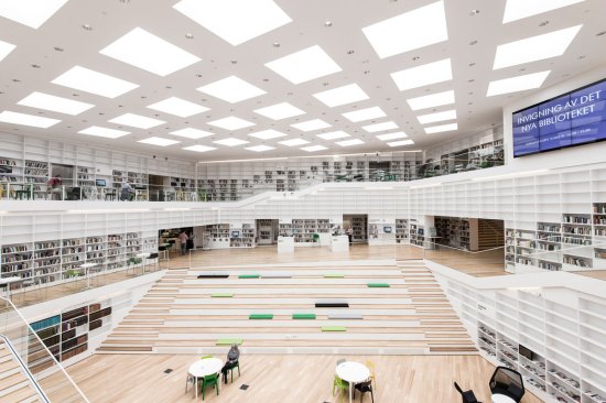 Dalarna Media Library designed by ADEPT is organized as a ’spiral of knowledge’ identifying a new library culture that stages a wide specter of experiences and inspiration. The natural terrain of the surrounding landscape is continued as a ramp that spirals up through the central atrium of the library – its heart – where all search of information and orientation take place.