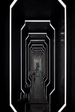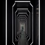 Another out-of-this-world element in this loft is the infinity mirror powder room on the main level which surprises the eye with its sci-fi corridor aesthetics, directly inspired by the Death Star scene in the original Star Wars movie.