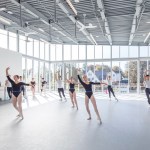 designLAB architects were selected by Walnut Hill School to design the institution’s new dance studio and black box theater, which were intended for use by multiple departments, including dance, theater, music, and visual arts, as well as by community dance groups. Given the diverse stakeholders, the design team worked with school administrators to develop a plan that prioritized flexibility. They suggested locating the new theater and studio space at the gateway of the campus, adjoining the existing dance center.
