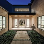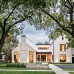 This spec house fits into its traditional Dallas neighborhood with its double gabled form, but it combines that with a decidedly modern and minimalist palette of materials. The 5,390-square-foot home—the brain child of local builder and developer BDDM—features an H-shaped floor plan: The east wing houses public spaces, including a story-and-a-half tall great room, kitchen, and dining area, while the west wing is dedicated to more private uses, such as a master bedroom suite and home office. They meet at a central entry with a grand steel staircase, which overlooks an outdoor dining area next to the kitchen.