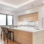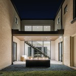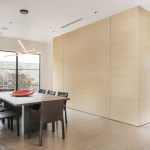 The home’s bronze-clad windows are set in tan brick and off-white walls of stucco over concrete masonry units—material choices that conform to the traditional-minded design requirements of the community, while still stretching that vocabulary to its limits. The interior finishes are equally spare, with wide-plank white oak flooring, and wood-clad cabinetry provides a graceful room divider between kitchen and dining areas. And the H-shaped plan is more than just creative siting: It provides convenient divisions for a four-zone HVAC system to efficiently heat and cool each wing.