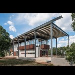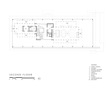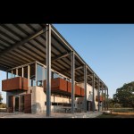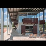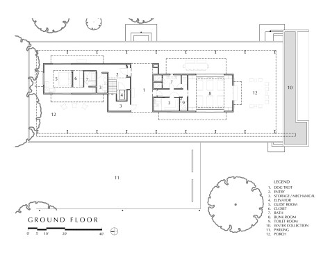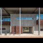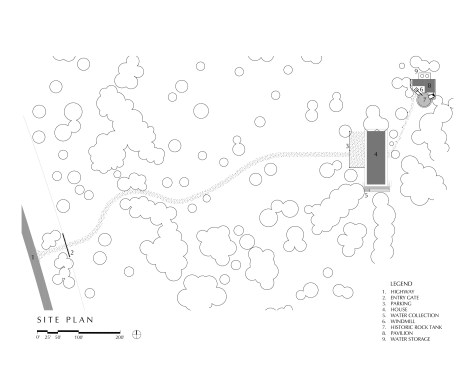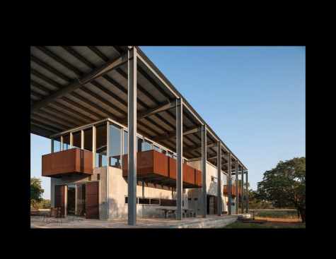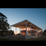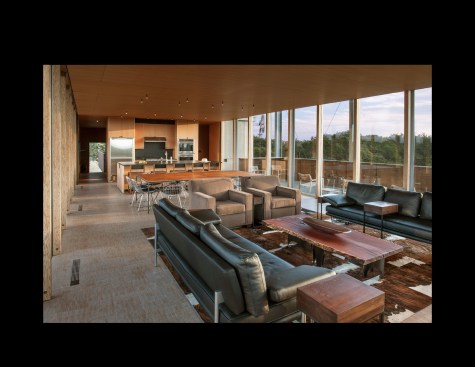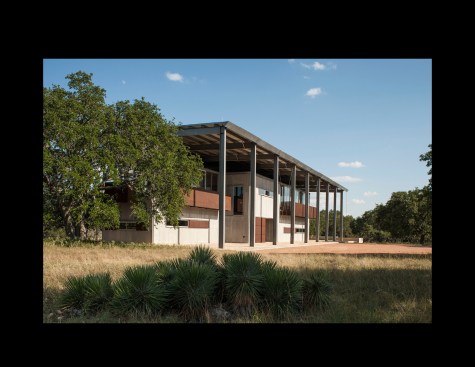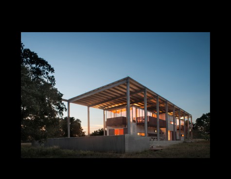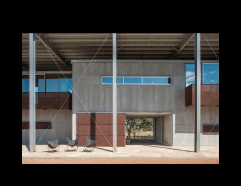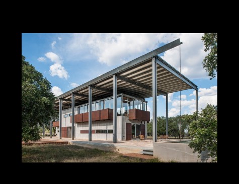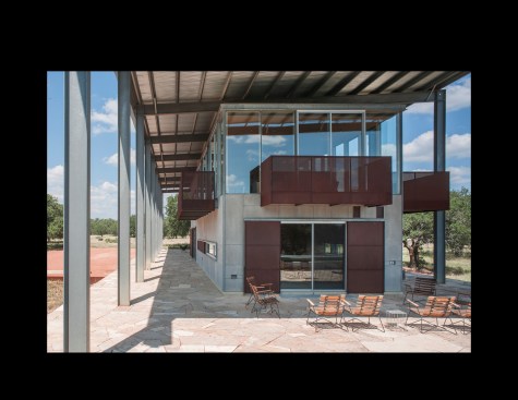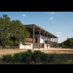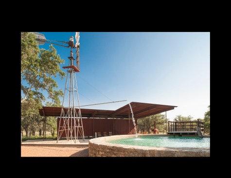 The project is an exploration of the typology of contemporary agriculture / industrial buildings that define the rural landscape today, and their fusion with and reinterpretation of the Texas Hill Country vernacular. Significant attention was given to the processional approach to the structure beginning with a highway entrance and drive that winds through Oak motts, slowly revealing the house. No trees were removed for construction of the house. A historic rock tank and accompanying windmill were saved and integrated as critical elements of the composition of structures. The house sets under and completely independent of the roof structure. The large umbrella-like roof provides shade and channels cooling breezes through and around the house while creating numerous outdoor spaces. The tough exterior is primarily concrete and galvanized steel with weathering steel screens and deck railings which allow visual transparency from inside, while the interiors are primarily finished in Douglas Fir. This project is a fresh approach to the stereotypical Ranch structure imagery, yet makes references to historic elements while interpreting them in a more contemporary vernacular.
