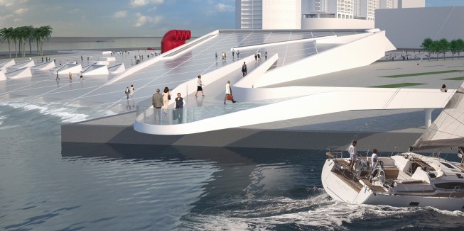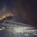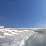 Relating to both the sea and the city and in constant dialogue between them, the building is an extension of the city to the sea and vice-versa. Conceived as a continuation and a transition through the wide public space, the building dives into the ocean and merges with it. It develops as a triangular sharp form, which concentrates the public routes to the museum, through an inviting shape that draws visitors to the entrance and distributes them to the interior.