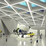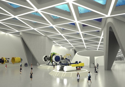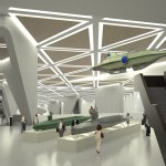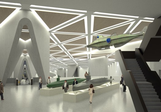 The building is simultaneously a vessel that supports the idea of the journey. Interior space is organized through cascading platforms that develop in a successive and continuous manner, allowing visitors to have a panoramic and clear overview of the whole museum’s interior, under a «water roof». Generous internal height allows the perception of wide interior views and the display of artifacts of significant scale. Inside this wide space, collection is divided in entities such as marine life, marine technology, supervisory material, interactive educational and experimental exhibits, aquariums, video projections and digital representations as well as underwater photography exhibitions.