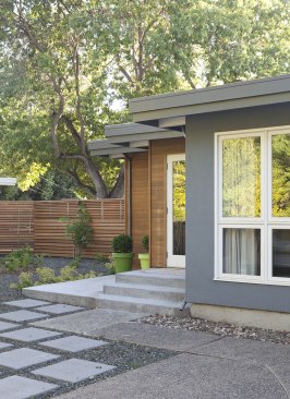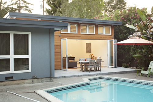The original post-and-beam approach didn’t align well, typical of a handful of original Eichlers from 1949. The design solution was to borrow the language of the later Eichler homes and make this prototype more “Eichler” than it was. Klopf Architecture added floor-to-ceiling glass, aligned beams from room to room for better flow and opened up the space to the rear yard / pool area.