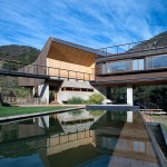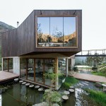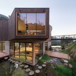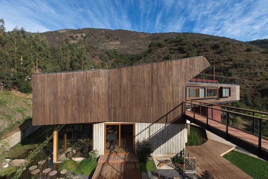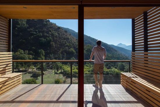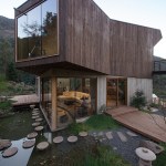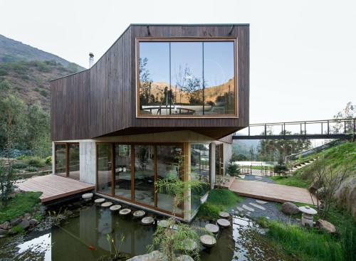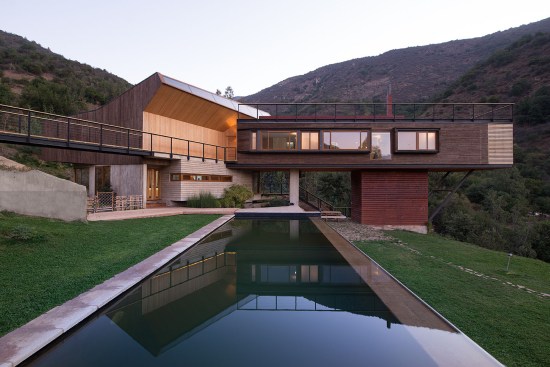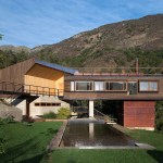 The building is located in the eastern hillside of El Maqui Brook, a rural place of The Coastal Mountain Range of Chile. This geographical zone is part of a protected natural reserve with high and important ecological value because its singular and diverse coexisting ecosystems.The client ask for a seasonal house for a family of six and a near garden around the house whose principal element was water. In order not to alter the rich forests and ecosystems we sought an already damaged hillside without vegetation to found the building. The new landscaping project should recover the area. The eastern hillside position assure us prolonged sunlight and optimal exposure to the prevailing ascendant air current.
