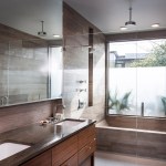 The Elizabeth Street master bath earned a 2013 Watermark Award of Merit for being a smart turn on the wet room. Here, a bath tub is contained within the glass-walled shower, rather than being separate from it.