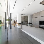 This technique allowed maximum freedom in developing a loose plan that emphasizes zones rather than rooms, which is played out with various degrees of privacy; the building is obscured to the street-front, yet completely open to the scenic view in the West. The ground-floor opens up to the elements using the architecture as framework for views of the landscape beyond. The second floor, which features the most private areas has a discreet roof terrace, which is set into the roof surface to exercise another dialogue between privacy and openness.