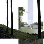 The 2,000-square-foot single-story structure sits on the north edge of a manmade pond in a forest clearing near the hamlet of Austerlitz, about 110 miles north of New York City. The clearing was created by a developer about a decade ago, and its artificial origin was not lost on principal Kathryn Dean, AIA: “It is beautiful, but in kind of a strange way,” she says. “The trees have really tall trunks but all the leaves are at the top.” Dean abstracted the ever-changing and particular light and shadow that the trees create to infuse the house with the ephemerality that gives it its name.