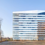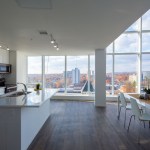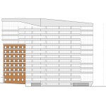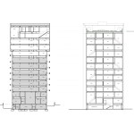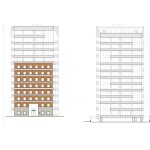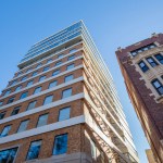 The design of the project takes the static typology of an existing 8 story brick office building to transform it into a more dynamic one through its expansion into a 156-unit, 14 story apartment complex that widens at its center and gently narrows to accommodate views and increase usable residential area. Along the façade, horizontal bands of exterior wall panels thicken at the center and narrow near the edges to create a variety of naturally lit bright spaces. These bands wrap around the existing building to create a mutual coexistence of the distinct architectural identities of the existing pre-war building and the new contemporary addition. These bands are broken up at the edges of the new addition by alternating loft apartments which offer double height fully glazed spaces. The inherit interior architecture of these lofts and their location on various floors create the exterior architectural language. The sloped roof line follows the profile of the topography and serves to hide the mechanical spaces as well as to create a wind barrier for its roof garden.