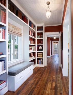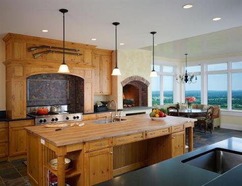 The large custom home perched above the Shenandoah Valley mimics building forms inherent to the region, while its casual open interiors fulfill the clients’ program requirements. The recently retired couple wanted to start a vineyard, indulge in their love of cooking, accommodate frequent visits from nearby grandchildren, and enjoy the site’s panorama of the Blue Ridge Mountains. The updated contextual design also respects the firm’s mandates. “We tried to make it look like a farm compound to break down the size,” Vanze explains. “We also didn’t want to have the building overwhelm the site by being on the top of the ridge, but still took full advantage of the vast views.”