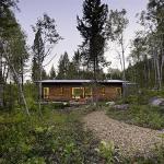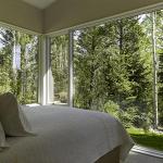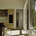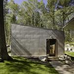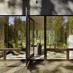 Carney kept the guest house’s two bedrooms small to allow more space for the public areas, a strategy that also helps the private rooms establish a close connection to the forest outside. “The bedrooms are 10 feet from the bed wall to the window,” he says. “You really feel like you’re sleeping in the woods.”
