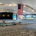 The Amphitheater opened at the start of summer 2016 into the beginning of fall featuring various bands, singers, and performers. Beyond a music venue, the theater could also be used for various events, including graduations. One can see that the stage, which is 40’ x 60’ is flanked by 50 foot hangar doors which close in the off-season and turn the stage into an indoor stage/dance floor. A challenge occurred in the design of the amphitheater as a local noise ordinance required the fly tower to be placed at the heart of the Childs Restaurant. To resolve this obstacle the architect suggested a “Theater in the Round” concept to combine seating from the restaurant area and the auditorium.