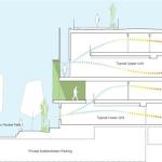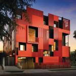 The stacked, two-story units all overlook the 4,600-square-foot park, and each one benefits from generous cross-ventilation. The structure’s corrugated, perforated metal skin mediates the dynamic, layered façade; according to O’Herlihy, its bright red color was inspired by the exterior hue of an iconic restaurant down the block. One judge expressed a desire to live in the 11-unit building himself. “It’s young, hip, and fun,” said another juror. “It’s more than the sum of its parts.”
